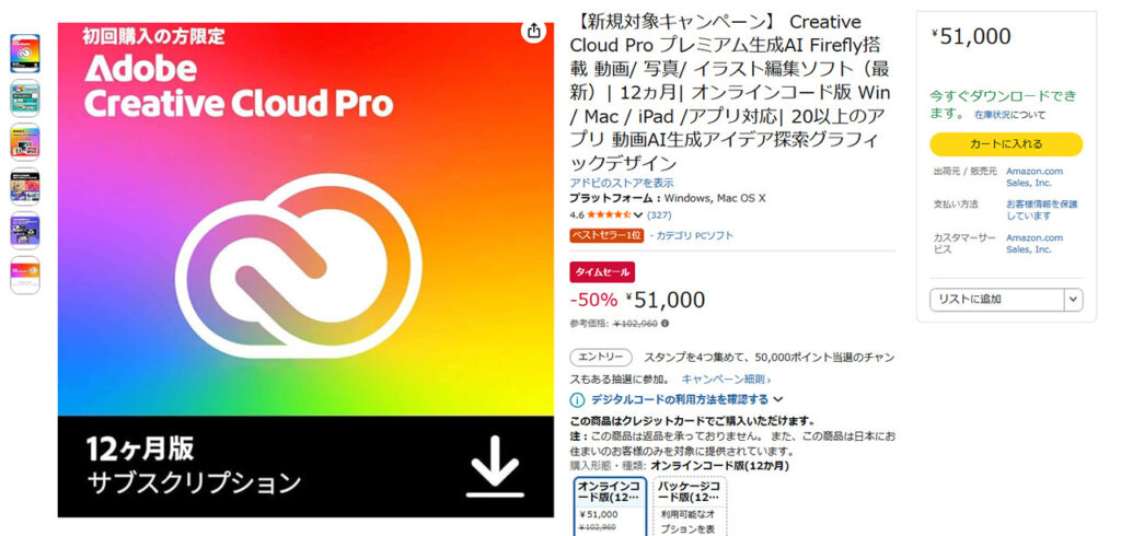 初めて本ページより、Creative Cloud コンプリートを購入するとキャンペーン対象となります。