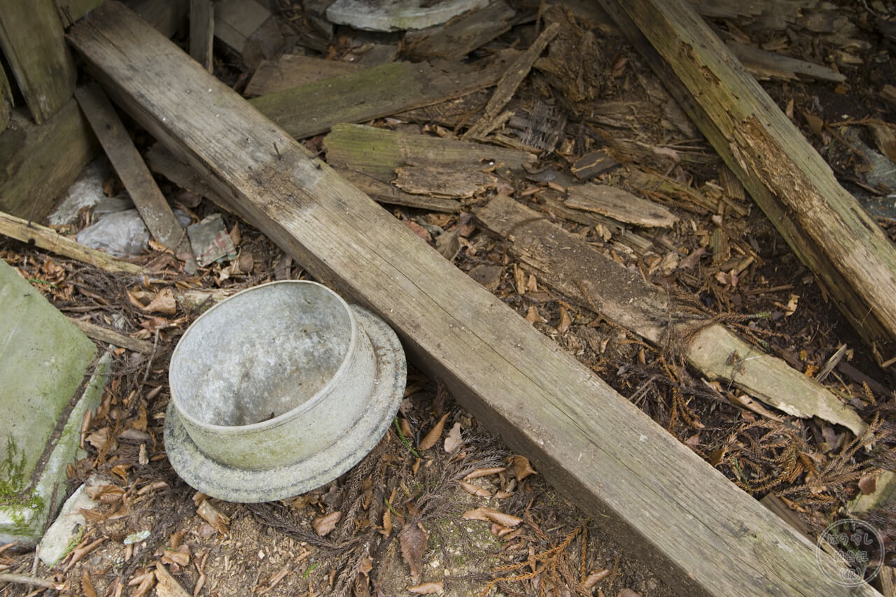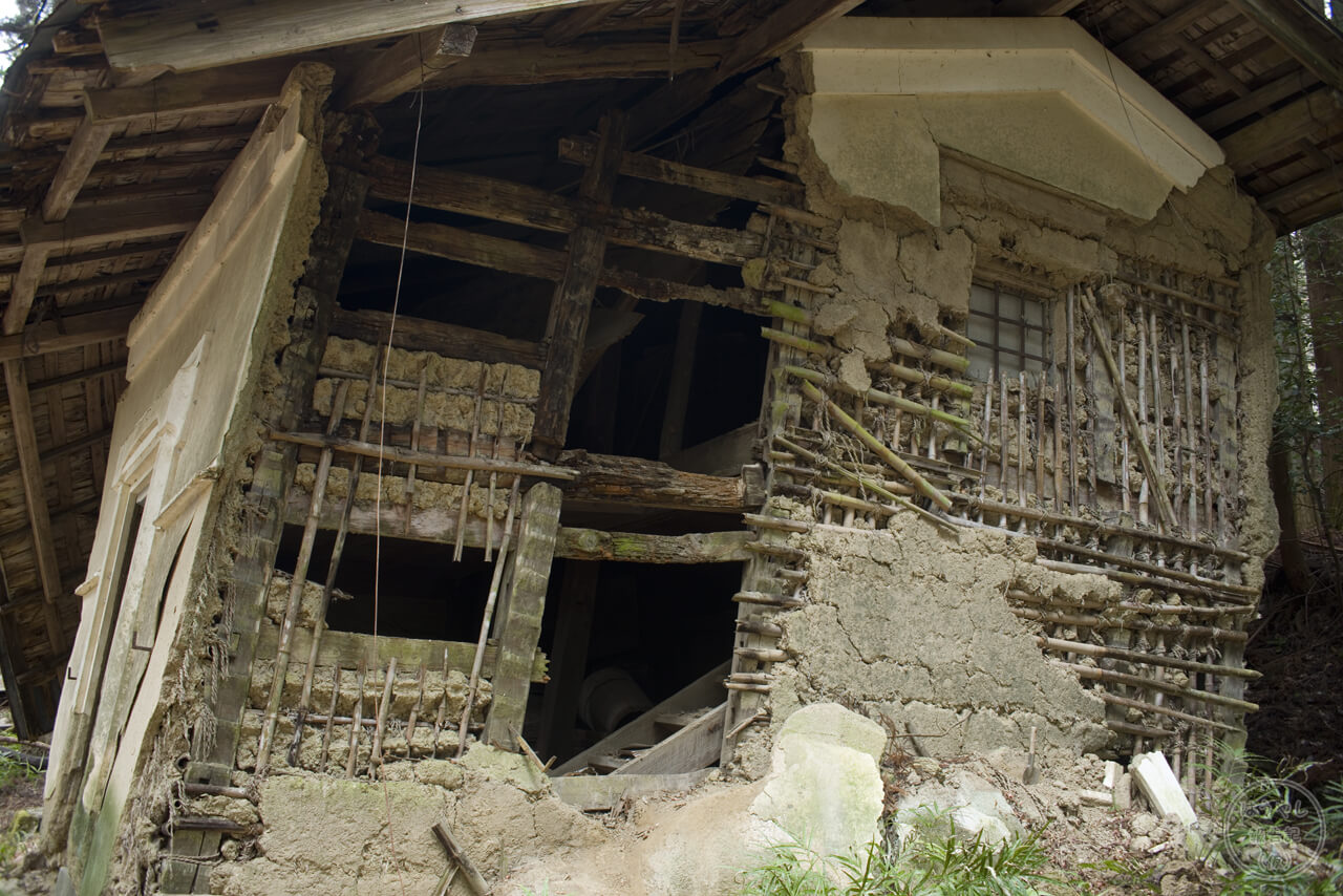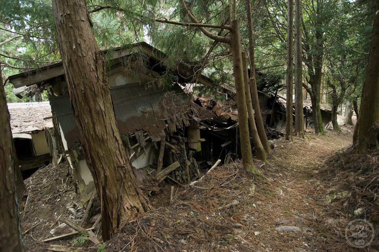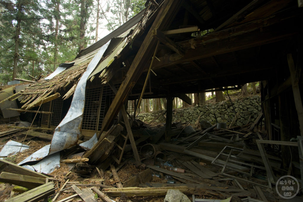 岳集落にある廃屋は老朽化によりほとんどが崩れている、もしくは、崩れかけていました。