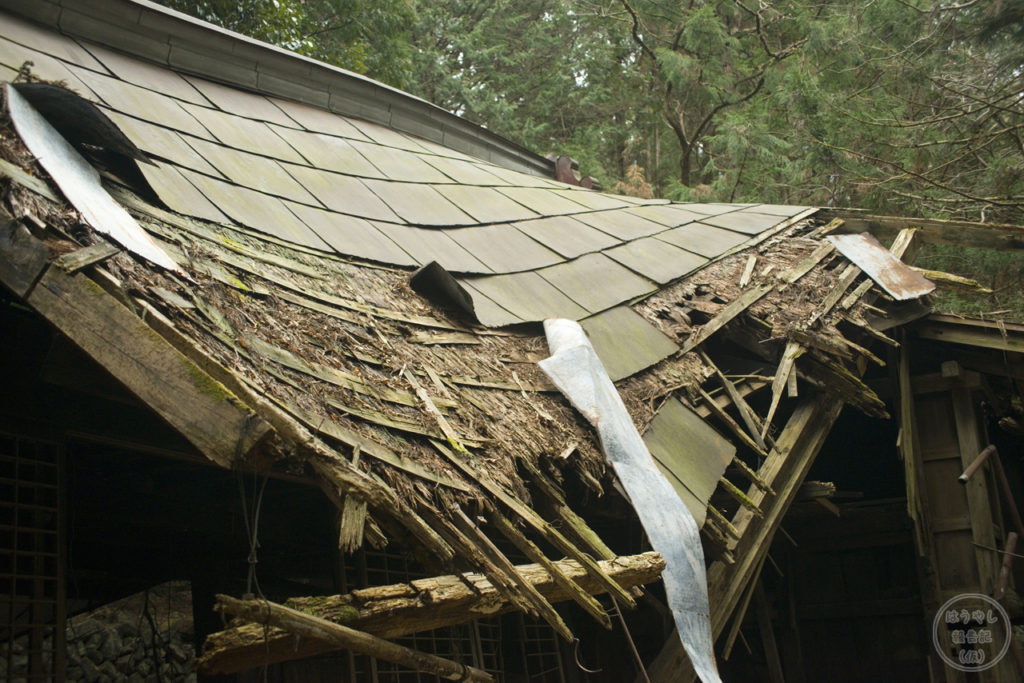 屋根が崩れ、今にも崩れ落ちそうな気配。