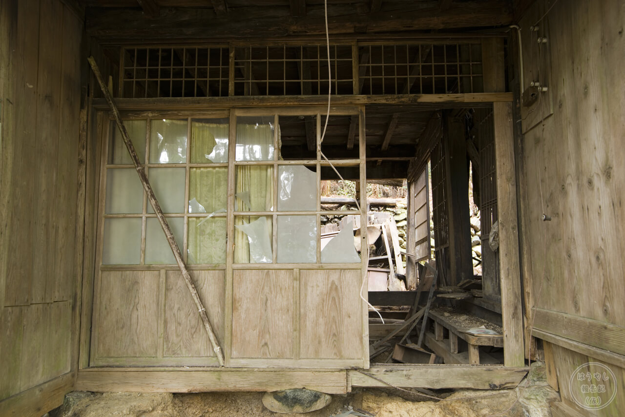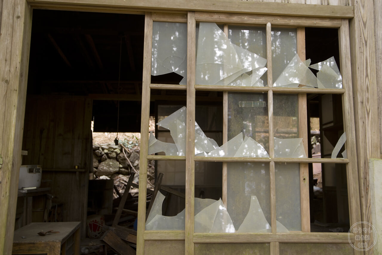 危険ではあるけれど、この割れたガラスがまた一段と廃屋にいい味を出してくれる。